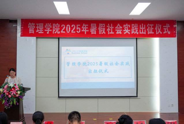 为深入学习习近平总书记关于青年的重要论述,引导青年学生在实践中受教育、长才干、作贡献。7月7日下午,我院于东校区4号教学楼二楼报告厅举行2025年暑期社会实践出征仪式。管理学院党委副书记张佳,团委书记李璐,思政课实践教学指导组教师胡付领、牛凤燕、于国良,辅导员索罗丹、马传金、任前树、高琦及暑期社会实践学生代表参与仪式,仪式由辅导员曹立茹主持。