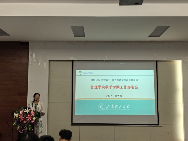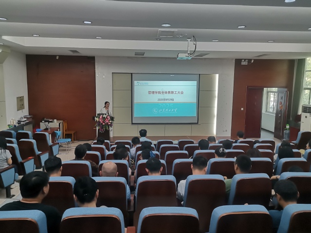829日下午,管理学院在四号楼报告厅召开2025年秋季学期教职工大会,会议由院长孙秀梅主持,学院全体教职工参加会议。