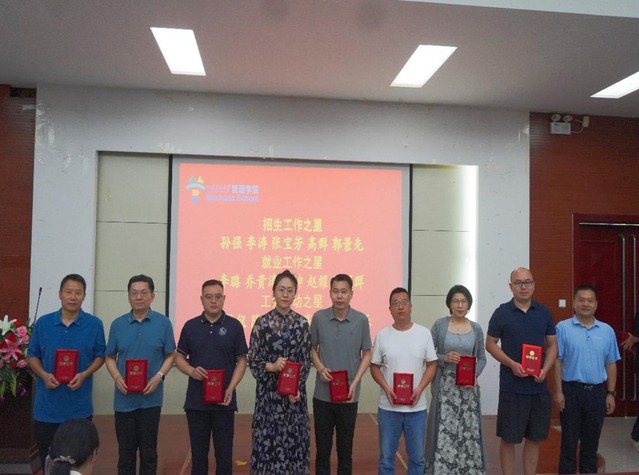 副院长胡付领为“招生工作之星”“就业工作之星”“工会活动之星”获奖教师颁奖。