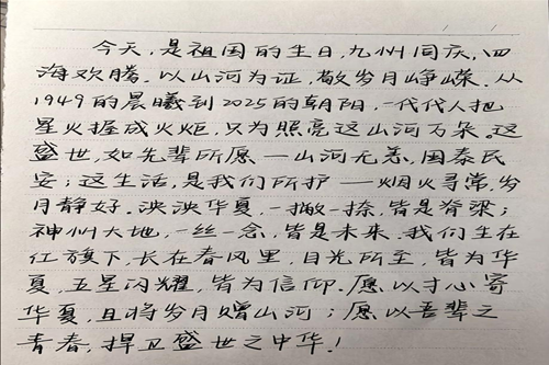 为迎接2025年国庆佳节,弘扬爱国主义精神,展现新时代青年学子的家国情怀与文字风采,慧语口才联盟于2025年10月2日至10月9日在线上举办了“笔墨致山河”国庆文案征集活动。活动面向管理学院全体学生,吸引了百余位同学积极参与,用文字传递对祖国的深情祝福。
